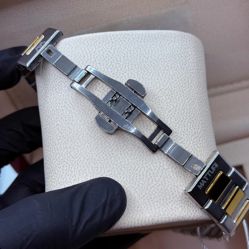 BESTWIN Black & Gold Marble: A striking high-contrast split face housed in a rich gold-plated and silver two-tone octagonal frame.